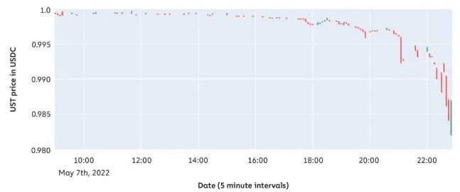 Une heure après, un autre trader a converti un total de 100 millions d’UST en USDC en quatre transactions, ce qui a aggravé la situation.
