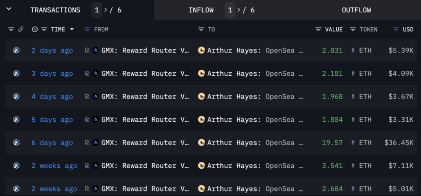 En analysant de plus près son historique de transactions, on remarque que Arthur Hayes tire une grande partie de ses revenus des activités de staking. En effet, le célèbre entrepreneur a placé 15,7 millions de tokens en staking sur l’exchange GMX.