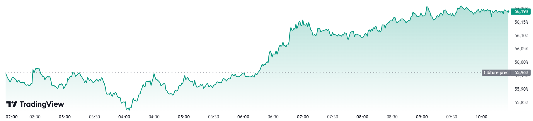 Pour l’instant, la réponse est oui si l’on observe la dominance de Bitcoin. Après une courte baisse, celle-ci plafonne désormais à 56 %. Elle est donc au plus haut depuis avril 2021 et elle pourrait encore grimper puisqu’un bull flag se présente pour elle.