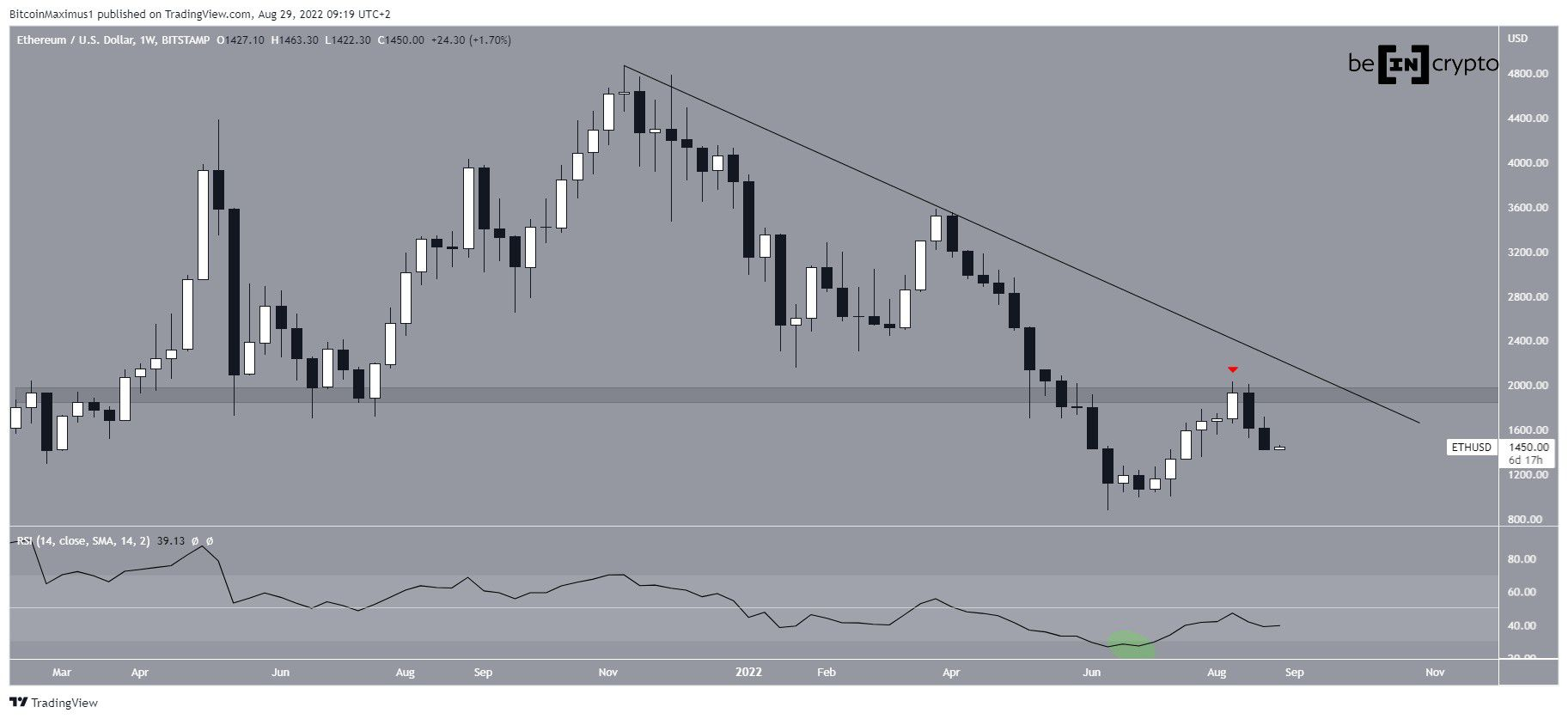 La lecture du graphique quotidien soutient la validité du rejet par le graphique hebdomadaire. Cela est dû au fait que le RSI est passé sous une ligne de support ascendante lorsque l’ETH a atteint le sommet susmentionné du 14 août.