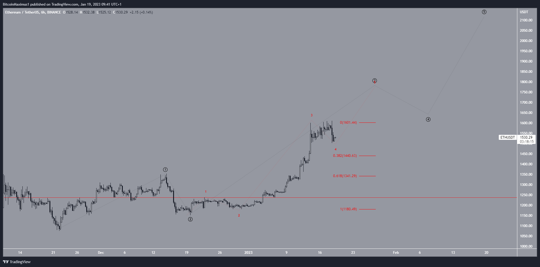 Un déclin d’Ethereum sous le support du retracement de Fibonacci 0,618, à 1 340 $, rendrait au contraire ce décompte peu probable, tandis qu’une chute sous le sommet de la vague un, à 1 244 $, l’annulerait entièrement. Dans ce cas, l’ETH pourrait alors chuter à moins de 1 200 $.