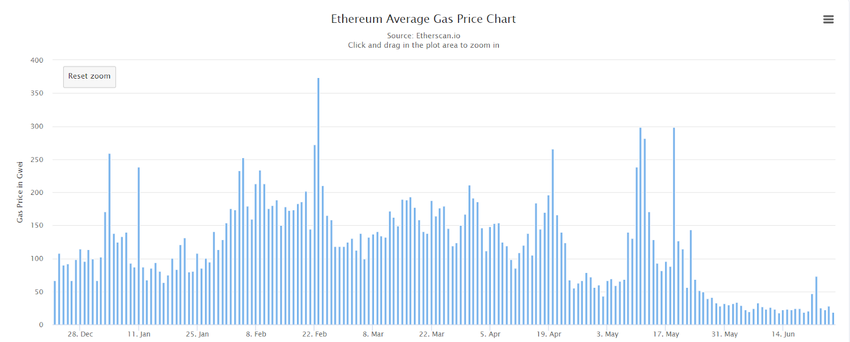 Toutefois, avec la récente correction du secteur crypto, qui a vu le cours d’Ethereum chuter de plus de 50%, on a observé un ralentissement général du marché. La baisse des cours a durement touché le marché avec une baisse de popularité, mais l’action négative des prix crypto a eu un impact favorable sur les frais de gaz de l’ETH.