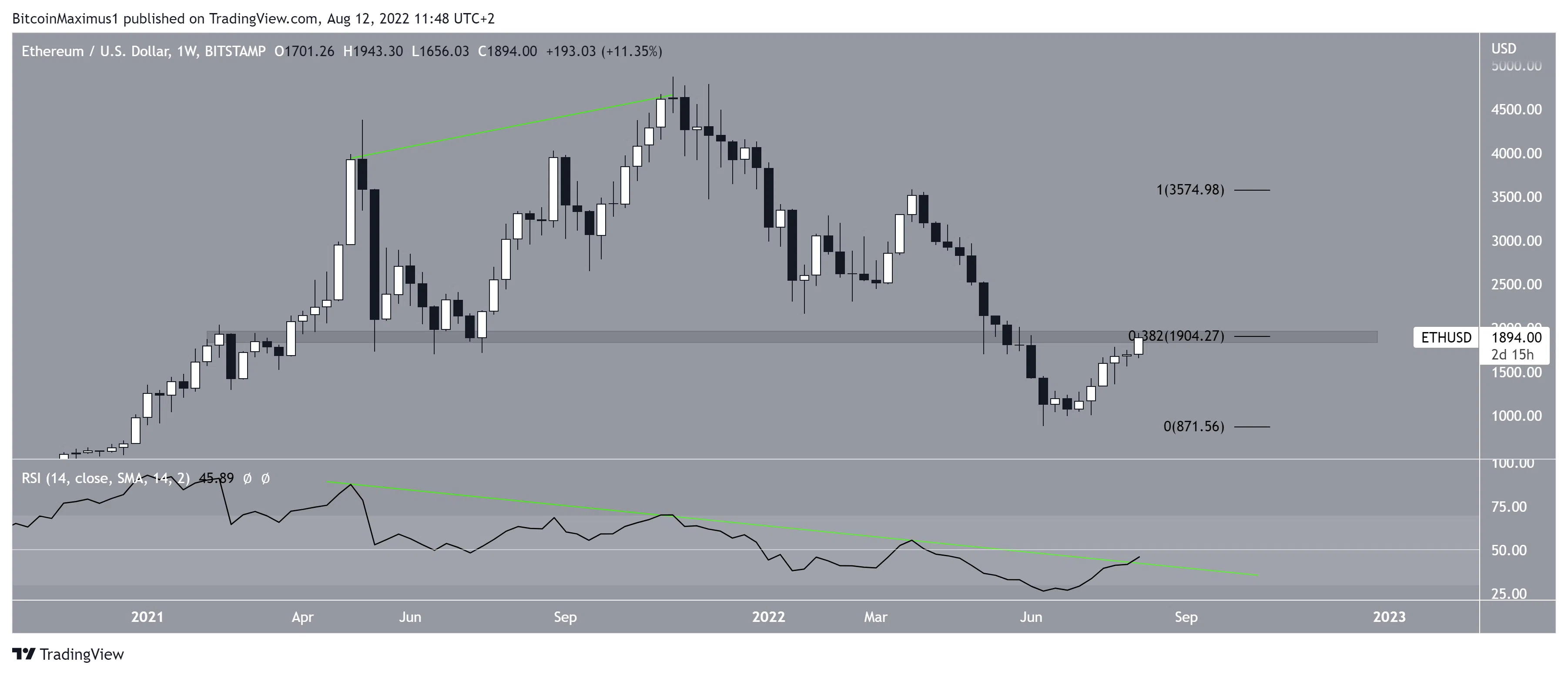 L’ETH évolue à la hausse depuis son creux de 880 $ atteint le 18 juin. Il s’est jusqu’à présent élevé à 1 943 $, ce le jeudi 11 août.