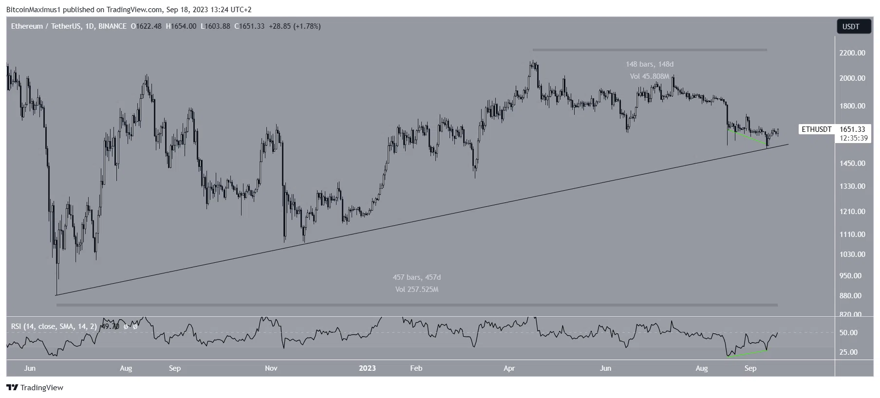 SponsoredEthereum atteint une ligne de support ascendante établie depuis 460 jours