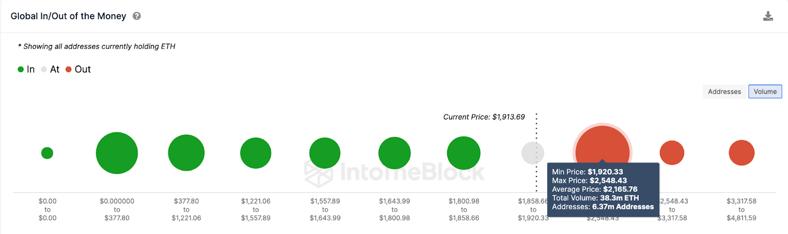 Sponsored SponsoredIl montre cependant que l’actif doit d’abord franchir la résistance initiale de 2 100 $ avant de se diriger vers 3 000 $. Comme le montre le graphique ci-dessous, 6,37 millions d’investisseurs ont acheté 38,3 millions d’ETH à un prix moyen de 2 165 $. S’ils décident de clôturer leurs positions plus tôt que prévu, ils pourraient ralentir le mouvement haussier.