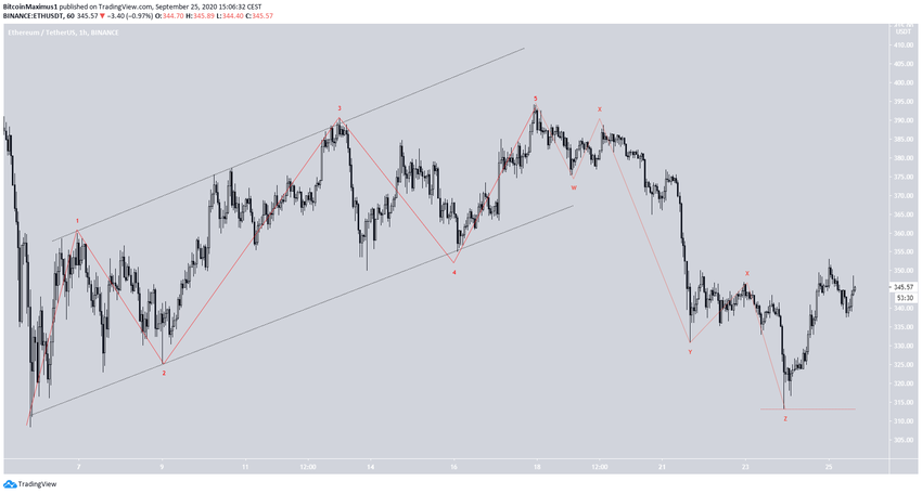 Le cours de l’ETH était en déclin depuis un sommet à 489,57$ le 1er septembre. Il suit également une ligne de résistance descendante.