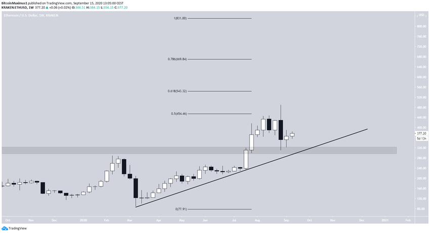 Une observation plus poussée du mouvement de cette année révèle que la structure haussière reste intacte. Le cours suit une ligne de support ascendante depuis mars, et sous laquelle il n’est pas repassé. De plus, l’ETH a dépassé la résistance horizontale des 315$ et l’a ensuite validée en tant que support.
