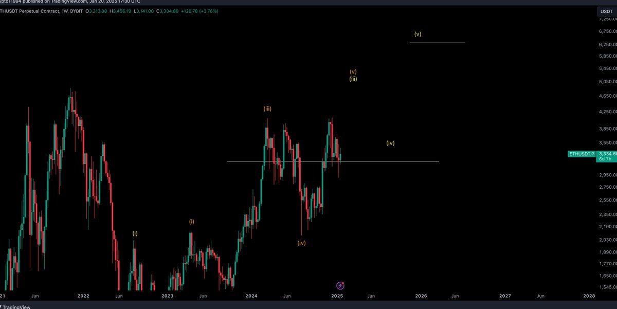 Dans un post sur X, l’analyste Crypto Tony souligne qu’Ethereum est à un tournant critique, évoluant sous une résistance majeure à 3 500 $. Selon lui, une cassure haussière de ce niveau marquerait la fin de la correction en vague (iv)et ouvrirait la voie à une impulsion vers 6 000 $, correspondant à la vague (v) de la structure en Elliott. En revanche, un rejet pourrait accentuer la pression baissière et entraîner un retour vers les supports à 3 250 $, voire plus bas, prolongeant ainsi la période de consolidation.