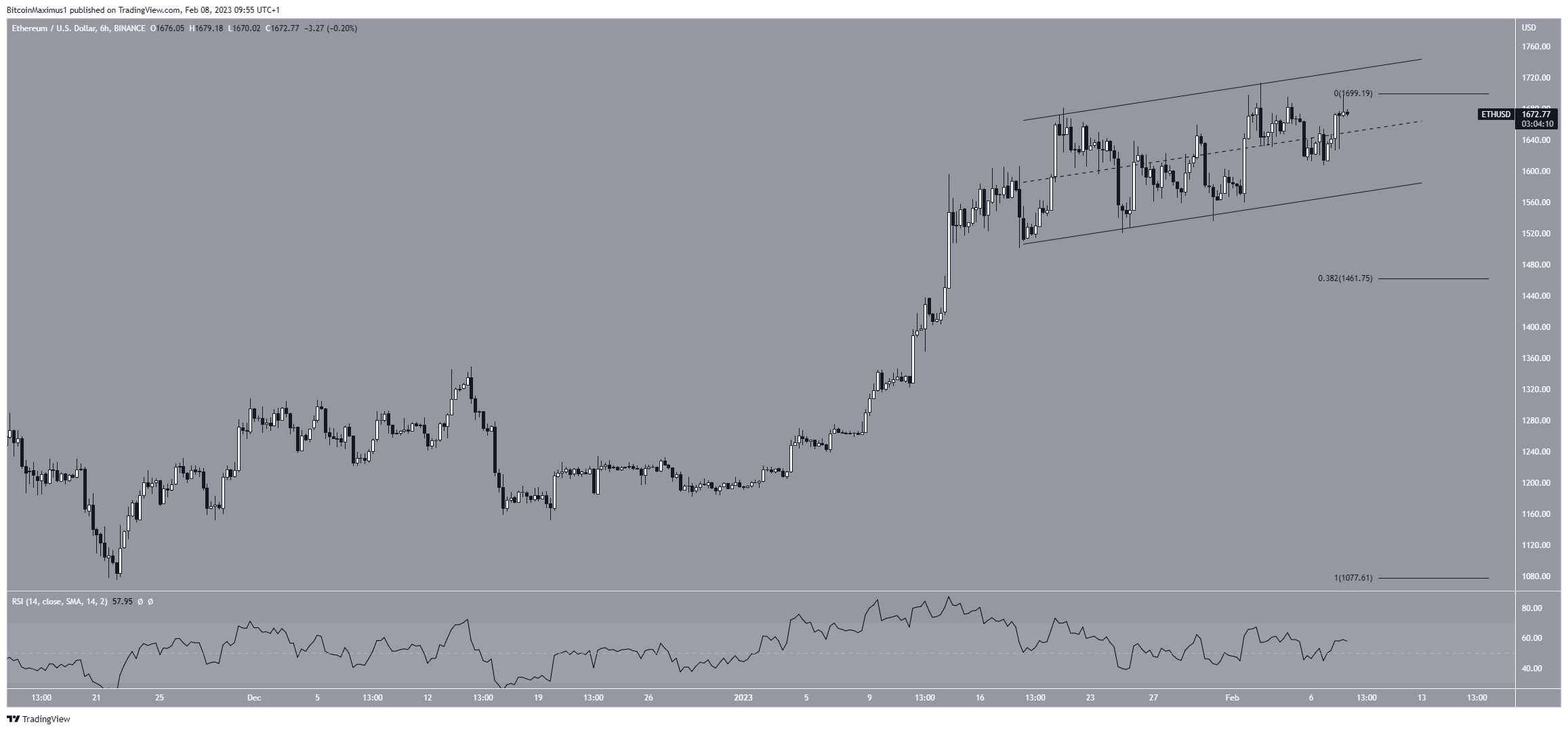 L’analyse technique des données sur six heures nous montre que le cours de l’ETH s’échange au sein d’un canal parallèle ascendant depuis le 18 janvier. Bien que ce type de canal soit généralement considéré comme une structure baissière, l’actif évolue dans sa partie supérieure, étant donc potentiellement en mesure de le dépassser.