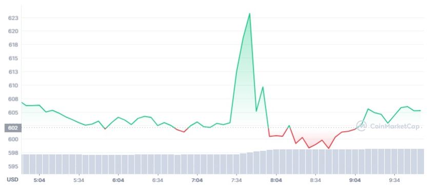 Au moment de la rédaction de cet article, selon les données de CoinMarketCap, le BCH se négocie à 604 $.