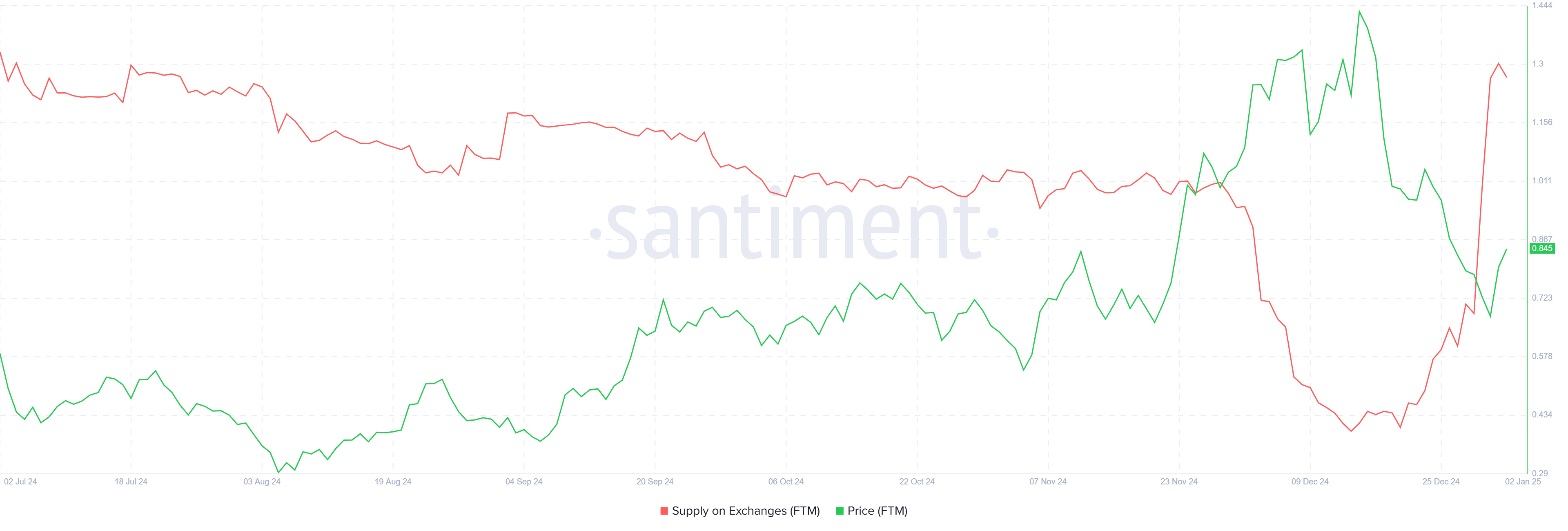 Cette semaine, l’offre de jetons FTM sur les échanges a fortement augmenté, avec 37 millions de pièces transférées en 48 heures. Les investisseurs ont récemment vendu leurs avoirs afin de sécuriser 31 millions de dollars de profits, reflétant des inquiétudes concernant une tendance haussière autour de l’altcoin. De tels mouvements indiquent généralement une confiance déclinante pour la cryptomonnaie concernée.