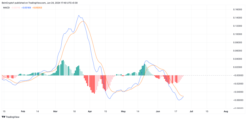 Cela est également confirmé par les lectures de l’indicateur de convergence/divergence des moyennes mobiles (MACD) de FTM. Également évalué sur un graphique journalier, la ligne MACD de la pièce (bleue) tente actuellement de croiser sa ligne de signal dans une tendance haussière.