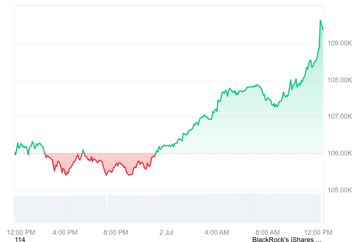 Après une journée réussie, le cours du Bitcoin s’est fortement rapproché des 110 000 $. En effet, grâce à une hausse journalière de 2,96 %, la revalorisation a été au rendez-vous. Désormais, le prix de négociation actuel est situé à 109 400 $.
