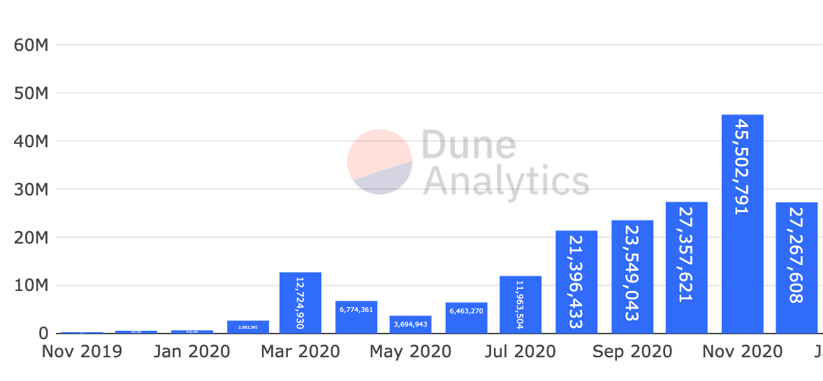 ParaSwap a connu une année 2020 réussie avec plus de 189 millions de dollars de volume sur la plateforme. Ce n’est pas moins de 51 300 swaps qui ont été réalisés durant cette première année complète d’activité.