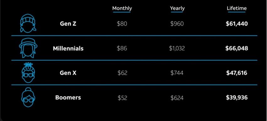 Comme le montre le graphique ci-dessus, la génération Y arrive en tête de liste en termes de dépenses de gaming.
