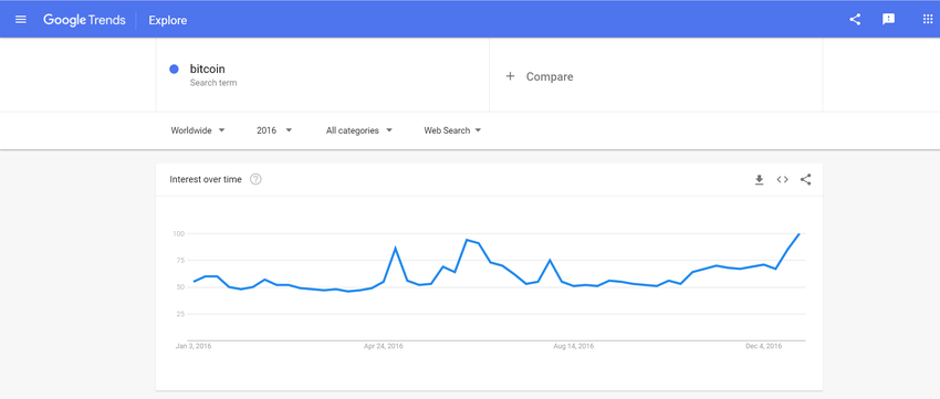 L’intérêt de Google pour Bitcoin lors du dernier marché haussier a commencé à vraiment augmenter en mars / avril 2017. Cela a coïncidé avec le dépassement du sommet maximum de l’époque, d’environ 1 125 $.
