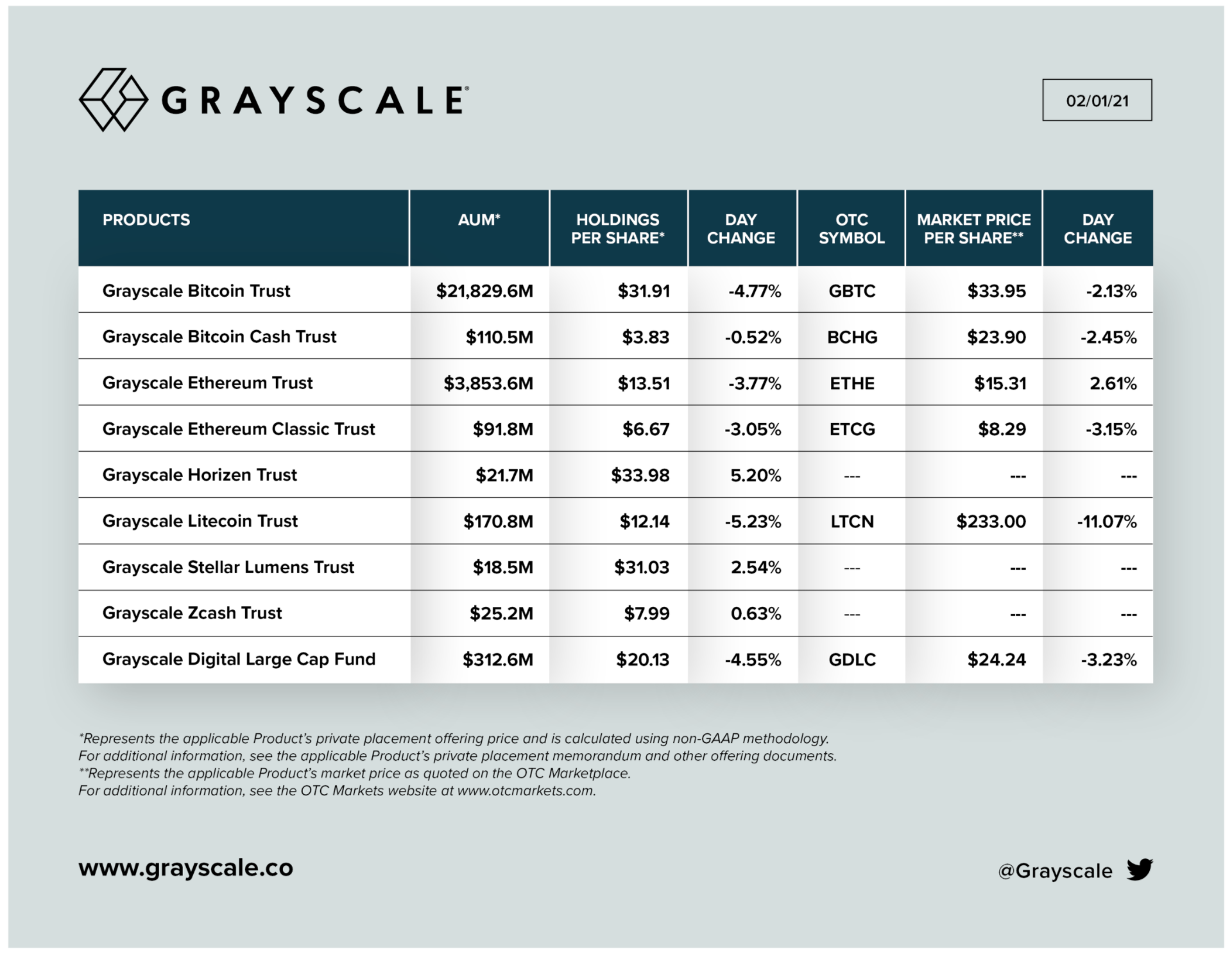 La plus grande confiance de Grayscale est son Bitcoin Trust. Alors que de plus en plus d’investisseurs commencent à voir les principales crypto-monnaies comme Bitcoin et Ethereum comme des magasins et des transferts de valeur légitimes, davantage devraient continuer à affluer vers ses offres de crypto-monnaie réglementées.