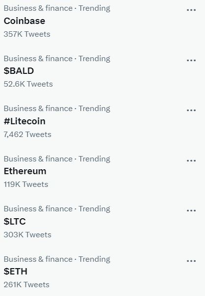 En parallèle, le volume social du Litecoin a augmenté tant sur les médias cryptos comme sur les réseaux sociaux. Sur Twitter notamment, les termes “Litecoin” et “ltc” sont Trending Topics. La majorité des tweets concernent bien évidement l’imminence du halving. D’ailleurs, il ne serait pas surprenant de voir le terme “halving Litecoin” ou “halving LTC” prendre le relais dès ce mercredi.