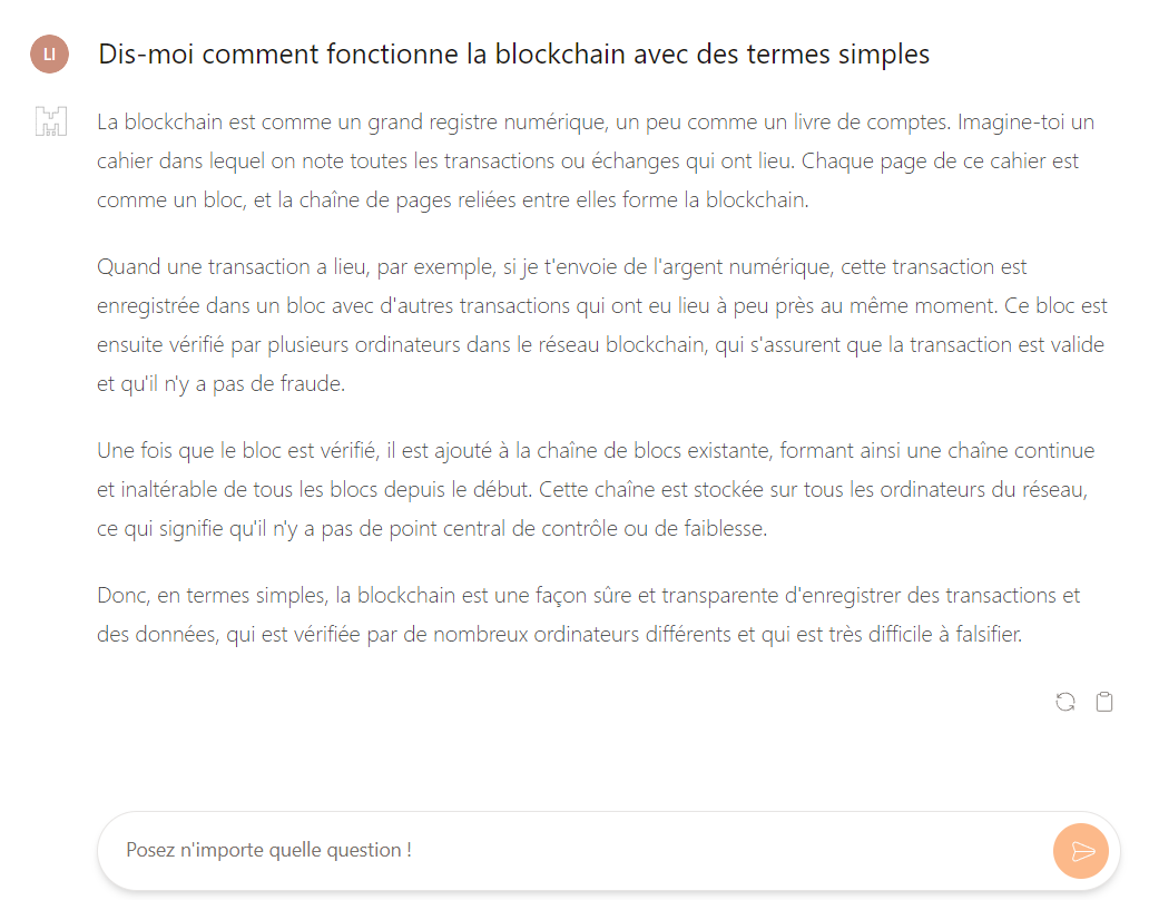 Toutefois, Le Chat pêche par une génération de réponse parfois longue (il bloque notamment sur certaines phrases) et par le fait qu’il n’accède pas à internet. Attention, donc, aux réponses obsolètes ou montées de toutes pièces !