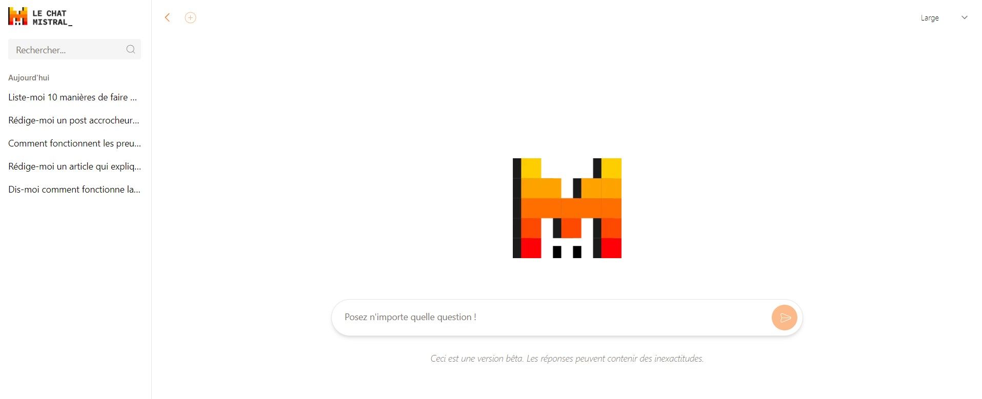 Il est également possible de choisir quel modèle on souhaite utiliser. Le “Large” propose des capacités de réflexion plus accrues tandis que “Small” joue davantage sur la rapidité. C’est toutefois le premier que nous avons choisi d’essayer.