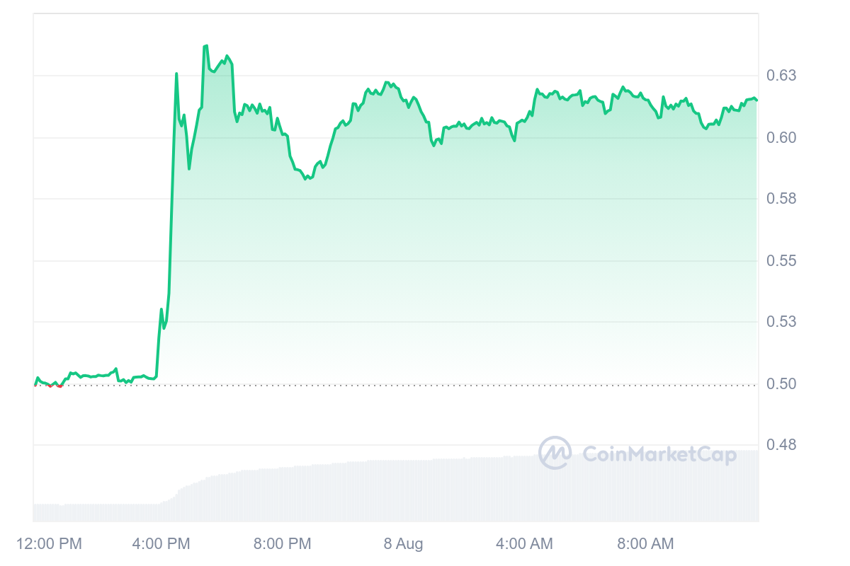 En conséquence, l’actif est fortement redescendu en ce début de mois d’août, avec un creux autour des 40-43 centimes de dollar puis remonté. Au moment de rédaction l’actif a réussi à se reprendre, et s’échange désormais à 0,61 $. Ce, après une dernière hausse journalière de 23,19 %.