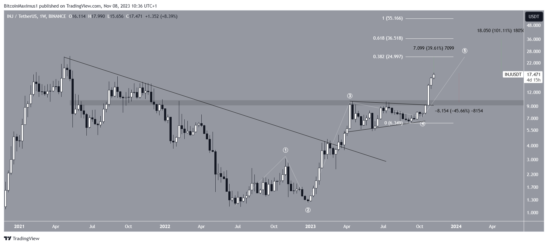 Injective (INJ) a franchi plusieurs niveaux de résistance et s’approche à grands pas de son sommet historique. Mais peut-il l’atteindre ?
