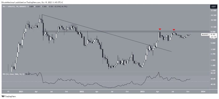 Le cours Injective (INJ) s’est négocié au-dessous de sa zone de résistance horizontale de 10 $ depuis son plus haut annuel en avril.