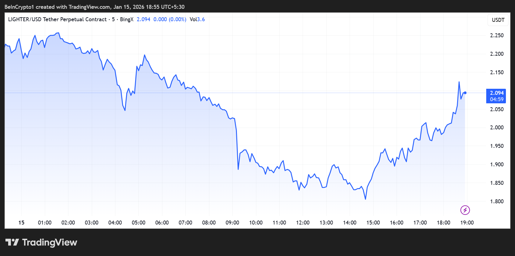 Robinhood a ajouté le jeton LIT du DEX Lighter à sa liste, faisant fi de la chute de 15 % de l’altcoin ce jeudi 15 janvier. Ce listing a favorisé la reprise du jeton du DEX, qui s’échange désormais à 2,11 $.