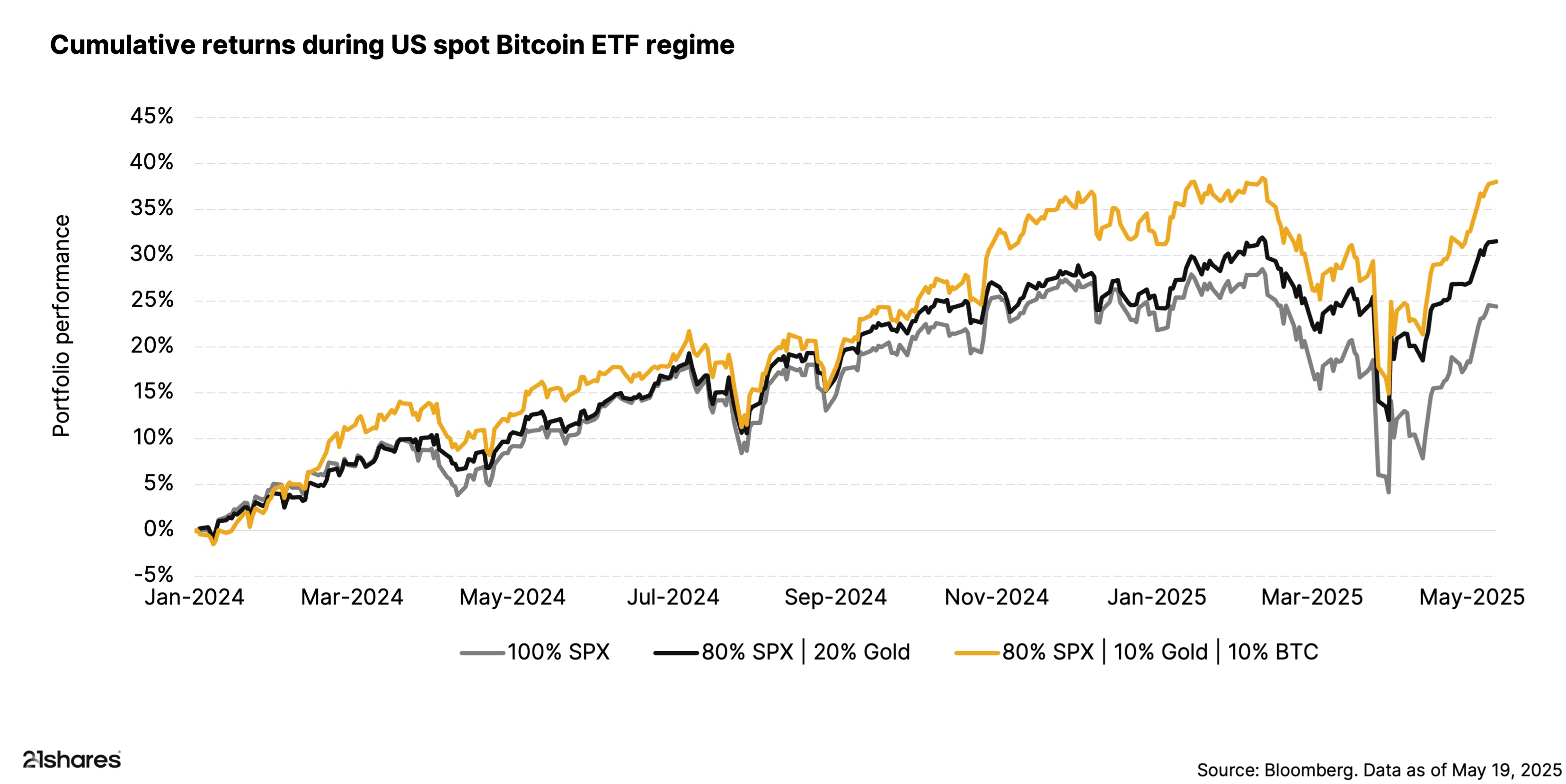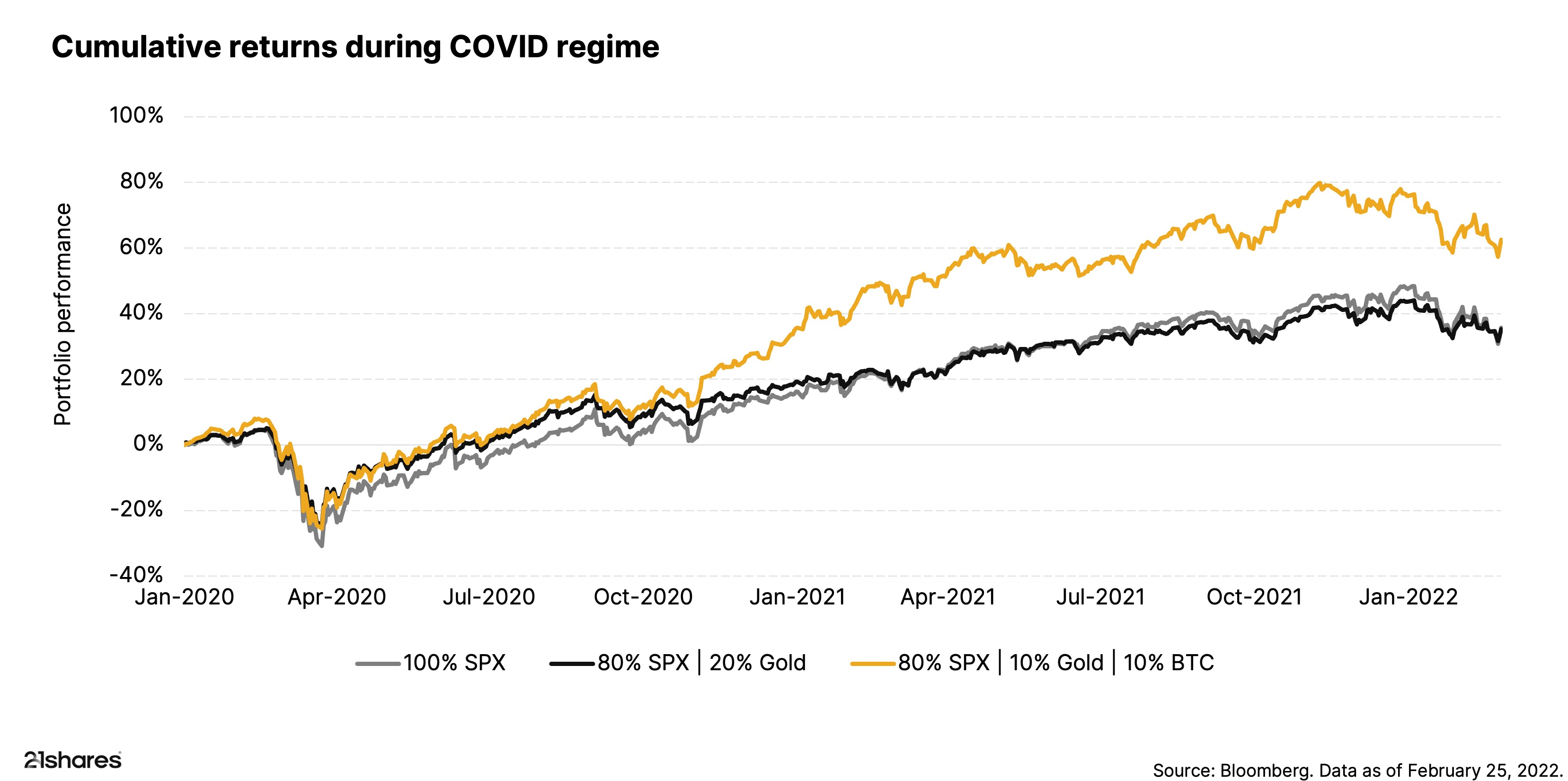 L’analyse de 21 Shares va dans le même sens. L’or, valeur refuge historique, préserve le capital face à l’inflation et aux crises, tandis que Bitcoin, actif numérique à l’offre limitée, capte la croissance et la performance lors des reprises de marché. Depuis plusieurs années, cette complémentarité a fait ses preuves : pendant la pandémie de COVID-19, l’or a contenu la volatilité alors que le BTC a propulsé les gains à la reprise.