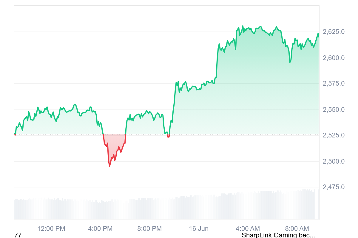 Après quelques difficultés pour Ethereum et le marché crypto ces derniers jours, le jeton remonte aujourd’hui avec un gain de 3 % qui permet à la pièce de dépasser les 2 620 $.