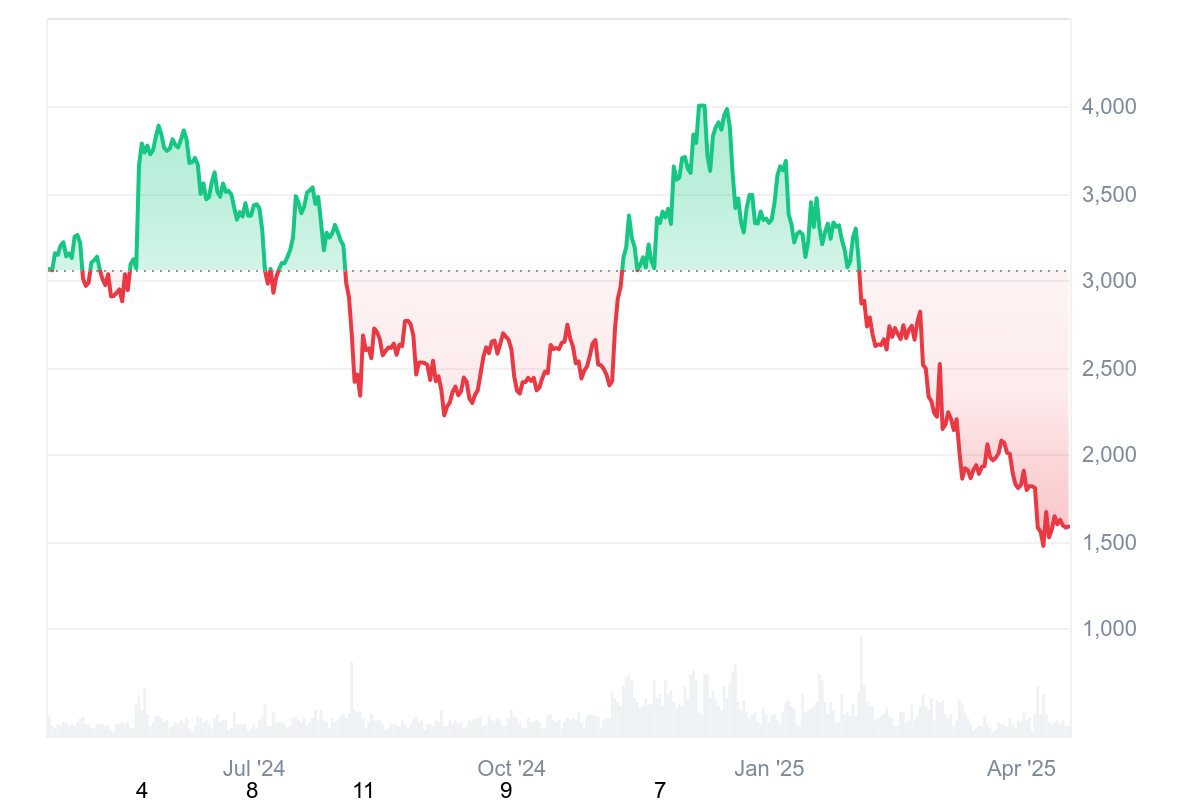 Ethereum a connu un retracement massif depuis le début de l’année 2025. Entre le 1er janvier et maintenant, la pièce a perdu plus de 52,85 % de sa valeur en 3 mois et demi. Ainsi, cette baleine semble miser sur une poursuite de la baisse et non par sur un Bottom local. En effet, puisque sinon, l’investisseur aurait préservé au chaud ses ETH jusqu’à une revalorisation progressive du prix de l’actif.