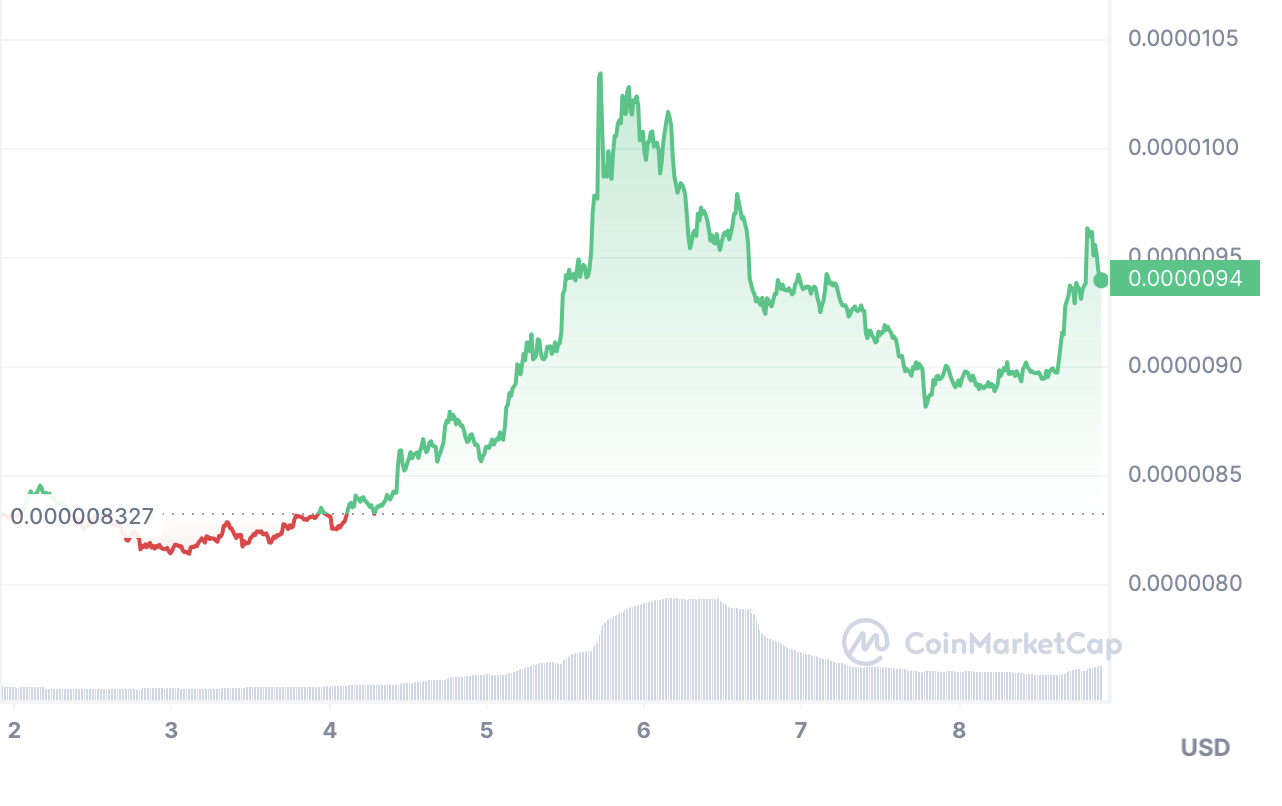 En plus de la reprise de Shiba Inu, un projet a captivé l’attention des collectionneurs de mèmes coins. Il s’agit de HarryPotterObamaSonic10Inu (ERC-20). En réalité, sa valeur a augmenté de 48,98 % au cours de la semaine et de 810,97 % sur le mois. Cette performance l’a propulsé à la 7ème position dans le top 10 des mèmes coins.