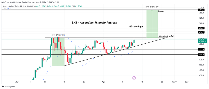 Le cours du BNB se négocie actuellement à 621 $, au beau milieu d’un triangle ascendant. Pour en sortir, le jeton de Binance devra tout d’abord trouver un support. Heureusement pour cette crypto, les investisseurs sont d’humeur positive et sont prêtà accumuler.