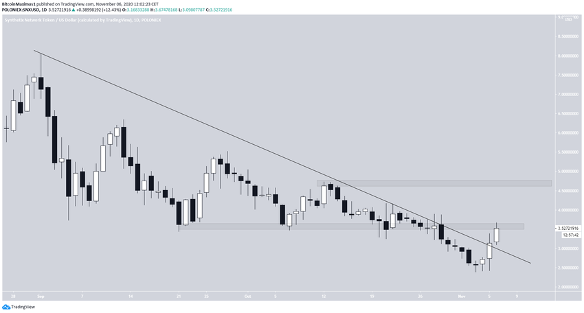 Le jeton de Synthetix Network a déjà dépassé sa ligne de résistance descendante et a commencé à monter.