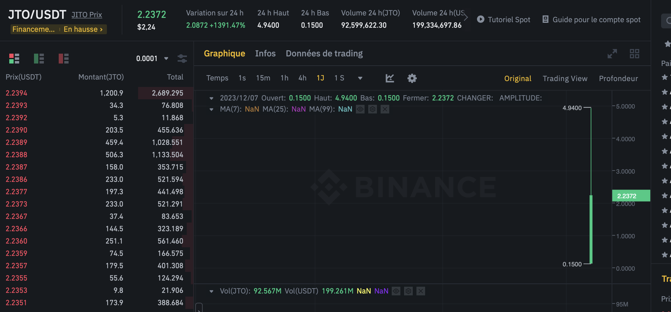 Le cours du JITO explose sur Binance
