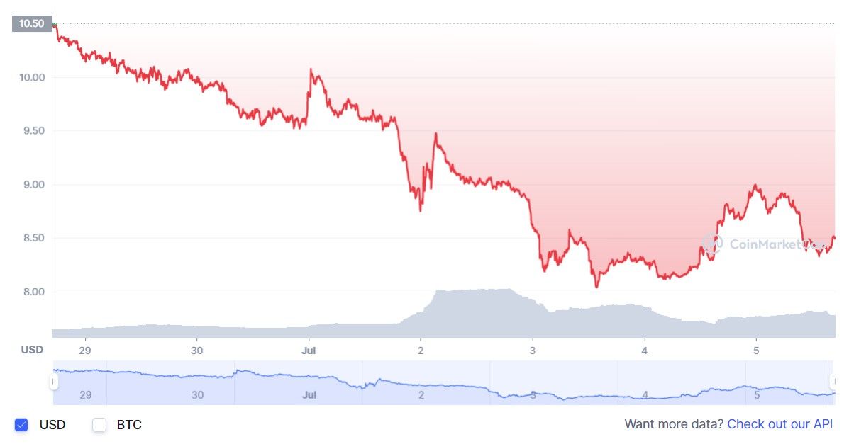 Nous l’avons déjà vu, les rumeurs qui circulent en ce moment ont de grosses conséquences sur l’entreprise qui en est sujette. Quelques jours plus tôt, Celsius Network en faisait déjà les frais suite aux rumeurs concernant la fuite de son fondateur. Pour KuCoin, les conséquences ne se sont pas fait attendre non plus puisque le cours de son jeton natif, le KCS, a chuté au cours des sept derniers jours. Les pertes seraient d’environ 18 %, avec une pièce valant désormais 8,50 $.