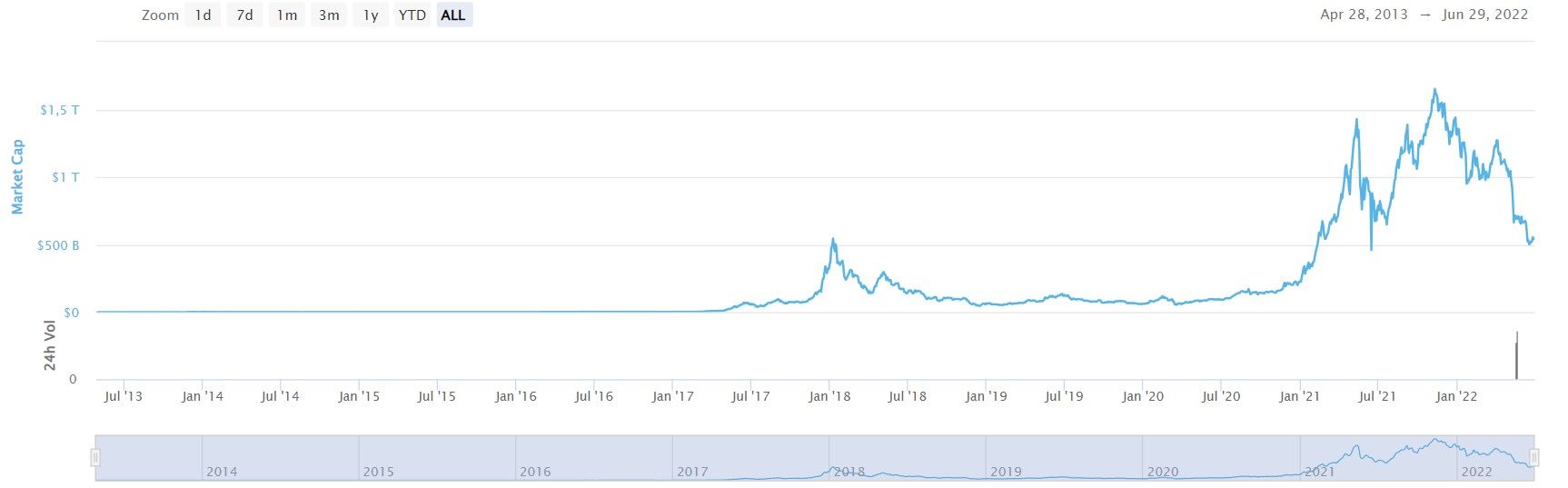 SponsoredEn effet, cette dernière vient de franchir un nouveau seuil alarmant. Après plusieurs années de développement pour atteindre les 69 000 dollars, Bitcoin a petit à petit perdu de sa superbe jusqu’à l’hiver crypto que nous vivons actuellement. Un phénomène que la capitalisation a également suivi et qui témoigne des nombreuses difficultés éprouvées par l’industrie. Alors que la capitalisation boursière des cryptomonnaies représentait 2 900 milliards de dollars en novembre 2019, celle-ci est passée à moins de 1000 milliards de dollars cette semaine. Un seuil qui reste, malheureusement, très difficile à surmonter.