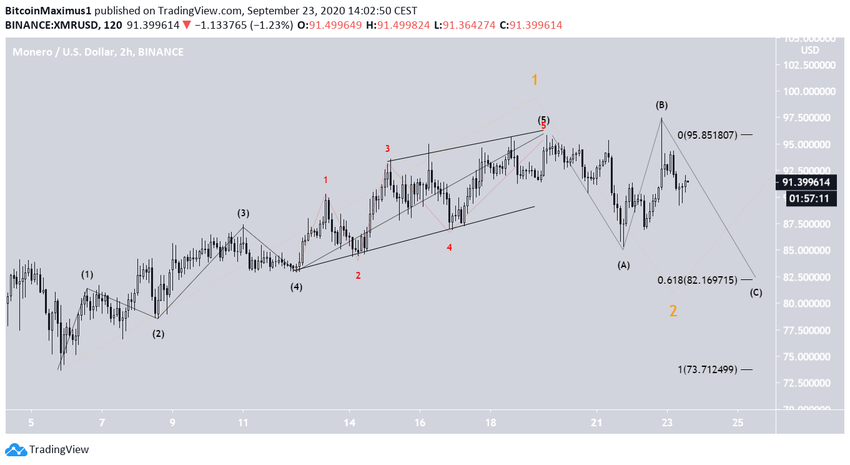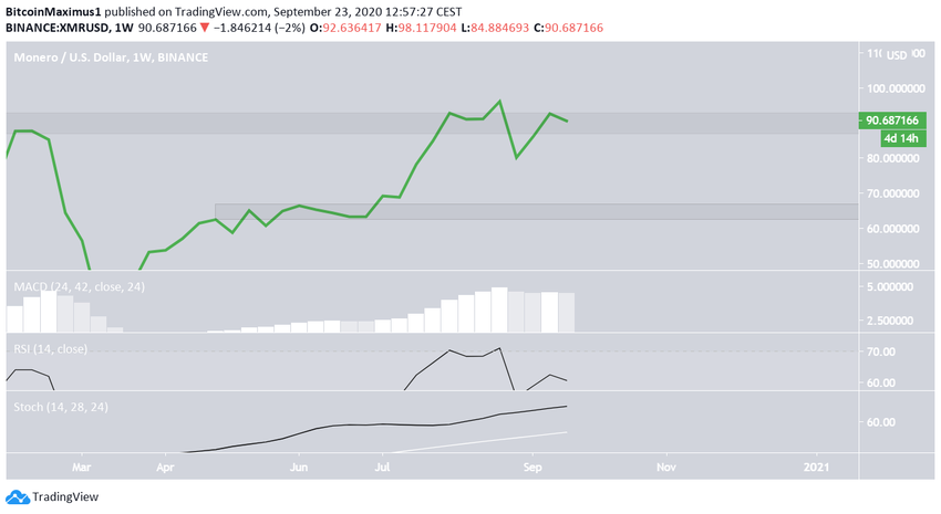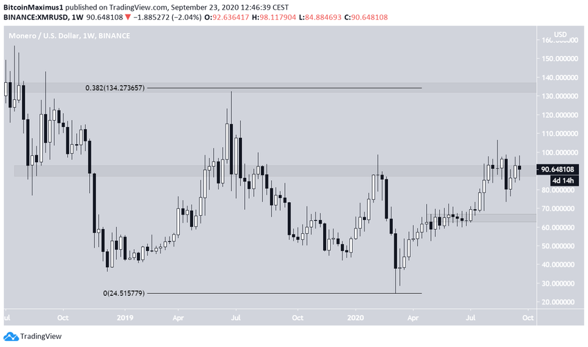 Le cours du XMR évolue actuellement au sein de la zone des 90$. Il a dépassé cette zone le 21 août, allant jusqu’à un sommet de 106$, mais a ensuite rechuté peu après. Actuellement, on ne sait pas encore si cette zone opposera une résistance ou servira de support.