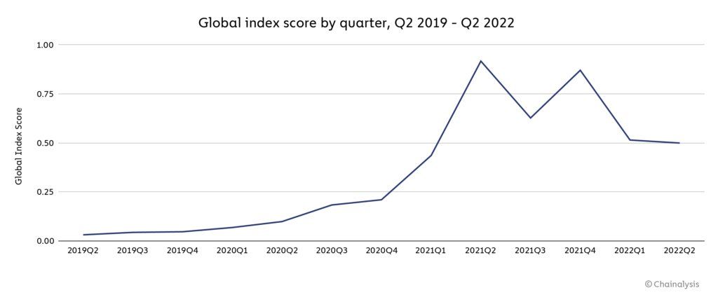 Extrait du rapport de Chainalysis concernant l’indice mondial d’adoption globale des cryptomonnaies