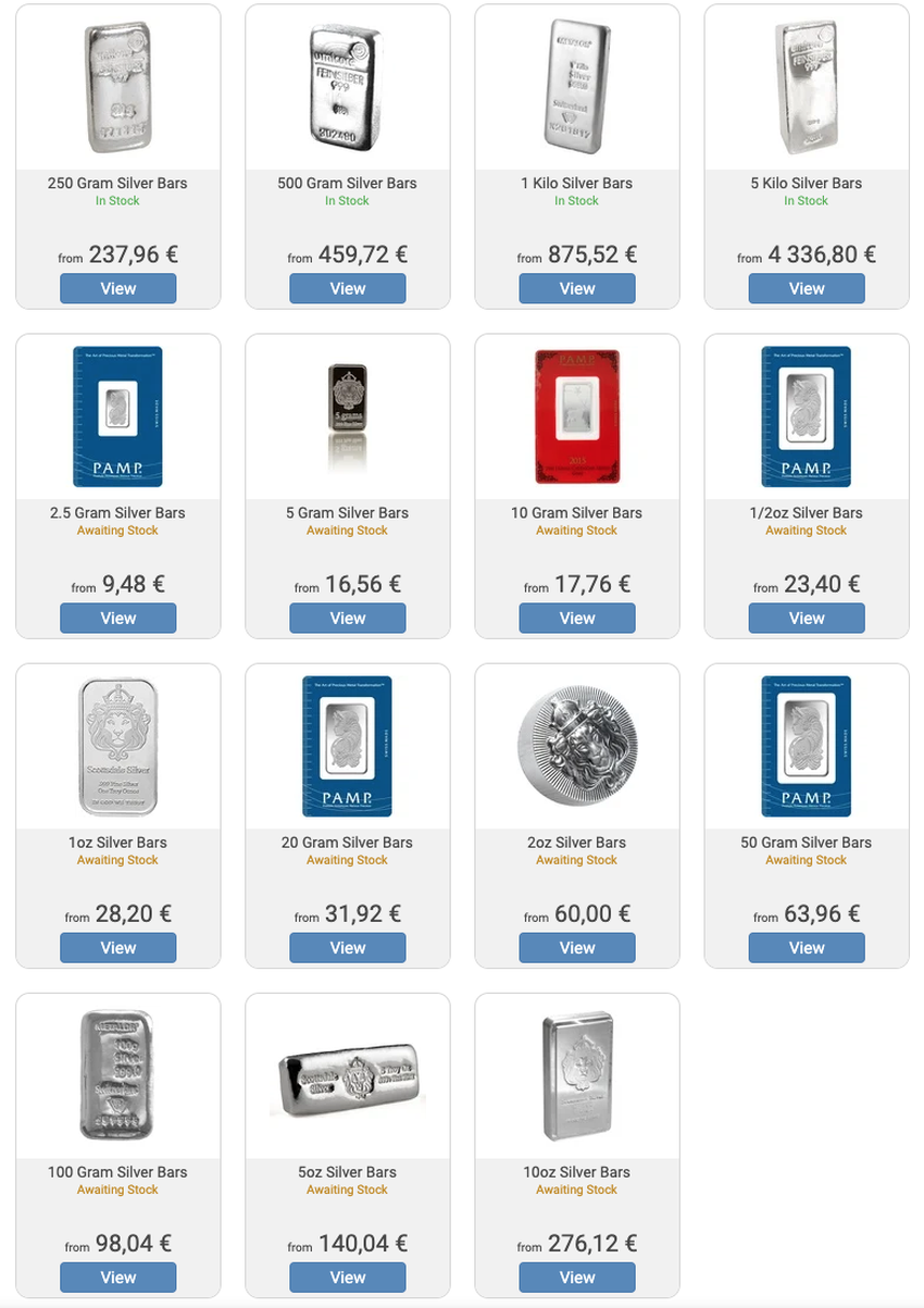 Bien entendu, les pièces et barres physiques sont associées à une forme de prix premium.