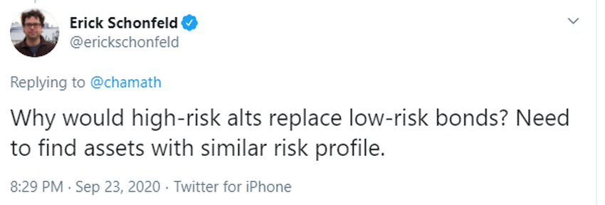 Pourquoi les alts à haut risque remplaceraient-ils les obligations à faible risque? Besoin de trouver des actifs avec un profil de risque similaire.