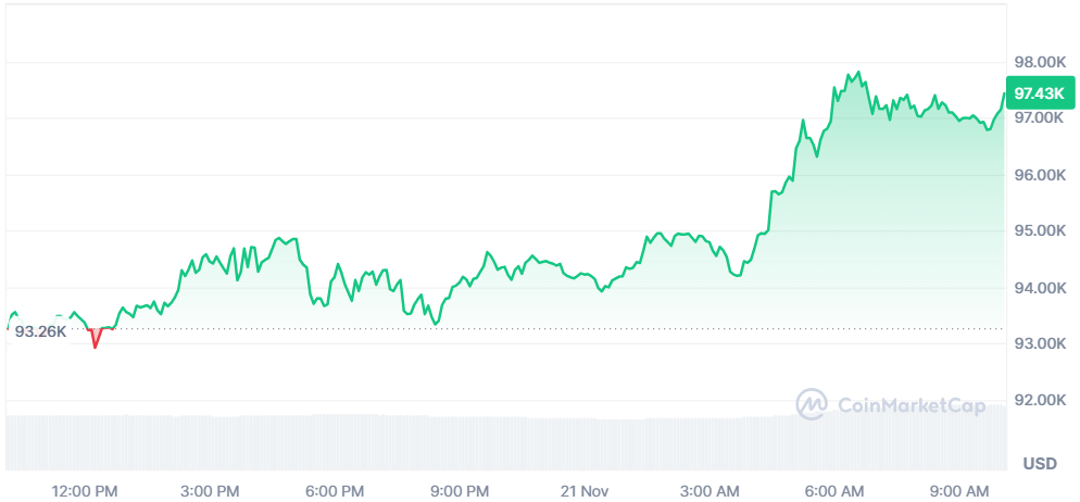 Le cours de Bitcoin a atteint 97 000 $ ce matin, plus proche que jamais des 100 000 $. L’objectif sera-t-il rempli cette semaine ?