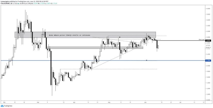 Cette descente a eu lieu avec un volume considérable. De même, il s’est produit après une tentative échouée du cours de dépasser la principale résistance des 3$. Cela dit, il avait déjà légèrement dépassé cette zone sous la forme d’une longue mèche supérieure.