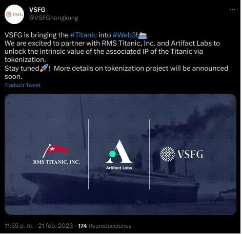 Le partenariat entre RMS Titanic, Inc (RMST). Venture Smart Financial Holdings Ltd (VSFG) et Artifact Labs, immortalisera l’épave du Titanic et ses objets physiques sur le Web 3.