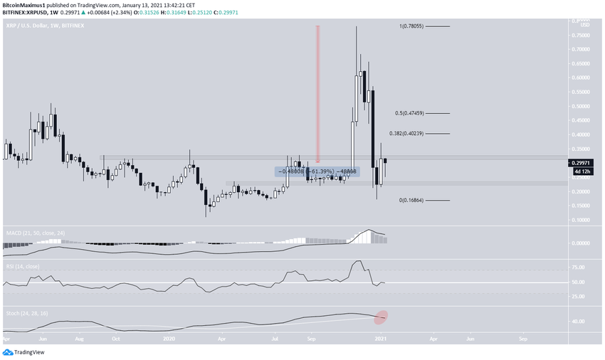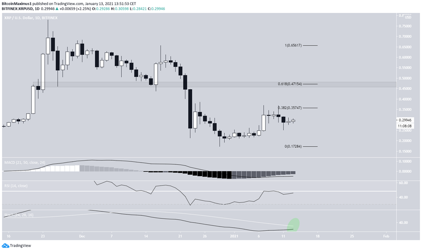 Depuis son sommet à 0,78$ du 21 novembre 2020, le cours du XRP a subi un déclin massif de 61%. Il est toutefois en hausse depuis son creux à 0,172$ du 29 décembre.