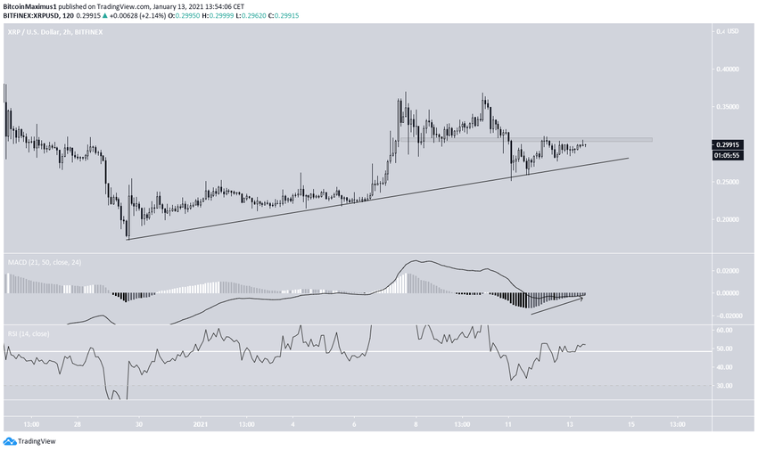 Le graphique de plus court terme, sur deux heures, montre que le XRP suit une ligne de support ascendante depuis le creux du 29 décembre.