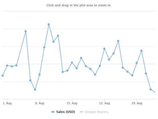 Cette baisse s’explique en grande partie par une nouvelle réduction du nombre d’acheteurs uniques, lequel est passé de 229 930 en juillet à 199 454 en août. Il s’agit du nombre le plus bas depuis les 152 064 acheteurs uniques de novembre 2021.