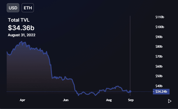 Ainsi, la TVL d’Ethereum a perdu 3 milliards de dollars avant la fusion nommée The Merge, ce après avoir ouvert le mois d’août avec 37 milliards de dollars et clôtuté à 34 milliards.