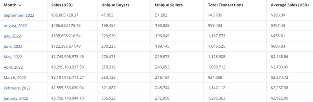 De nombreux détenteurs d’ETH pensaient que le projet allait regagner le terrain perdu en août, ce avant sa fusion de septembre. Malheureusement, la valeur totale bloquée (TVL), le volume des ventes de NFT et le prix de l’ETH ont tous chuté le mois passé.