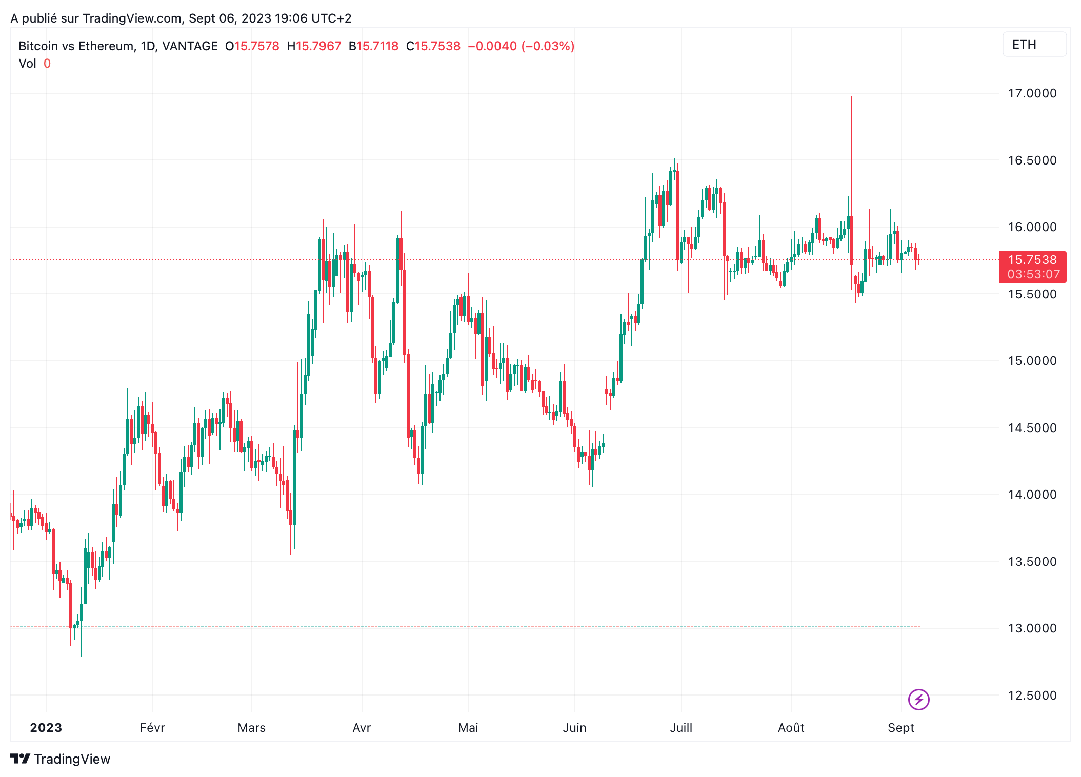 “ETH/BTC se négocie près de ses plus bas sur une période de 2,5 ans, avec une marge de progression relative considérable.” a-t-il ajouté